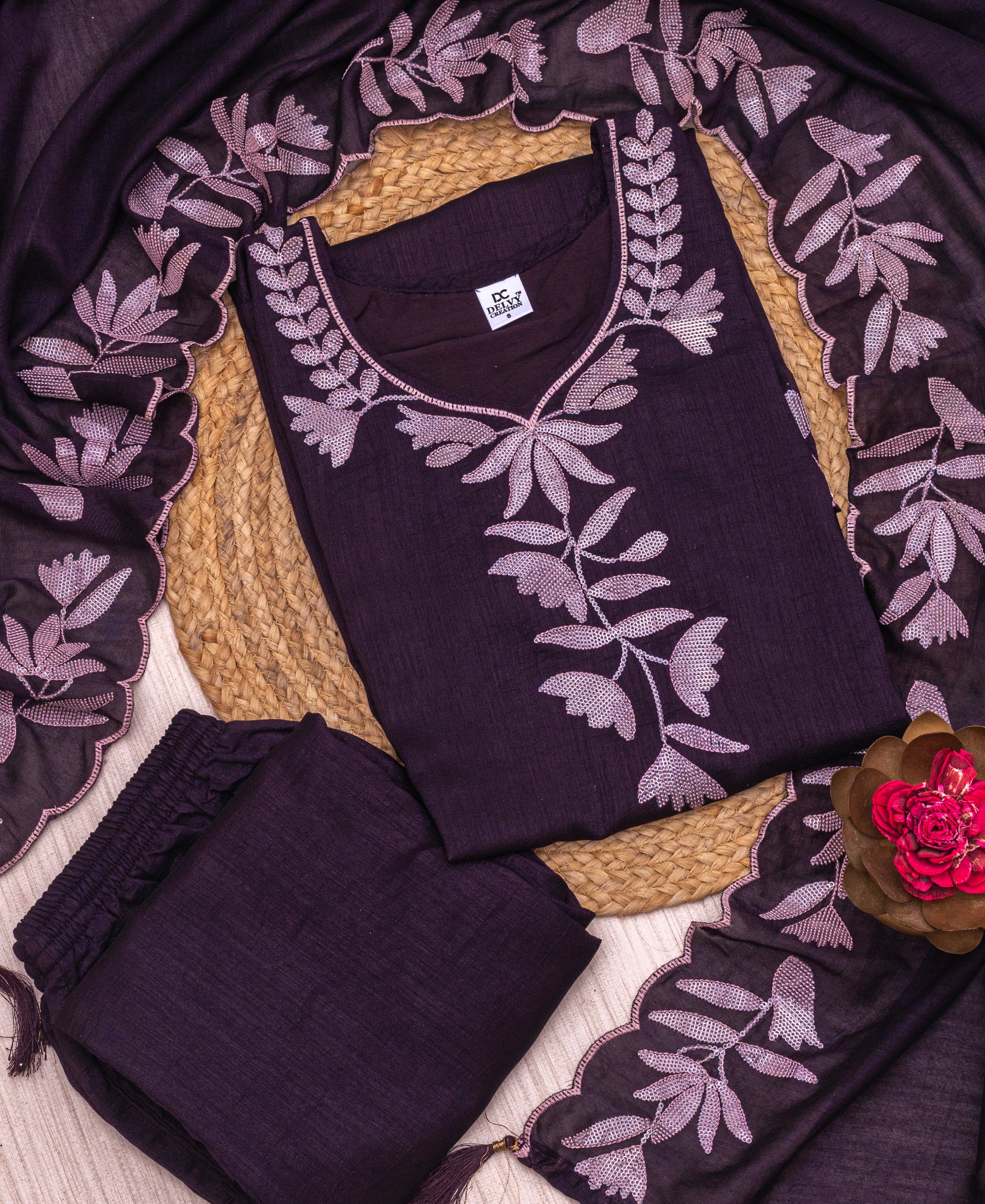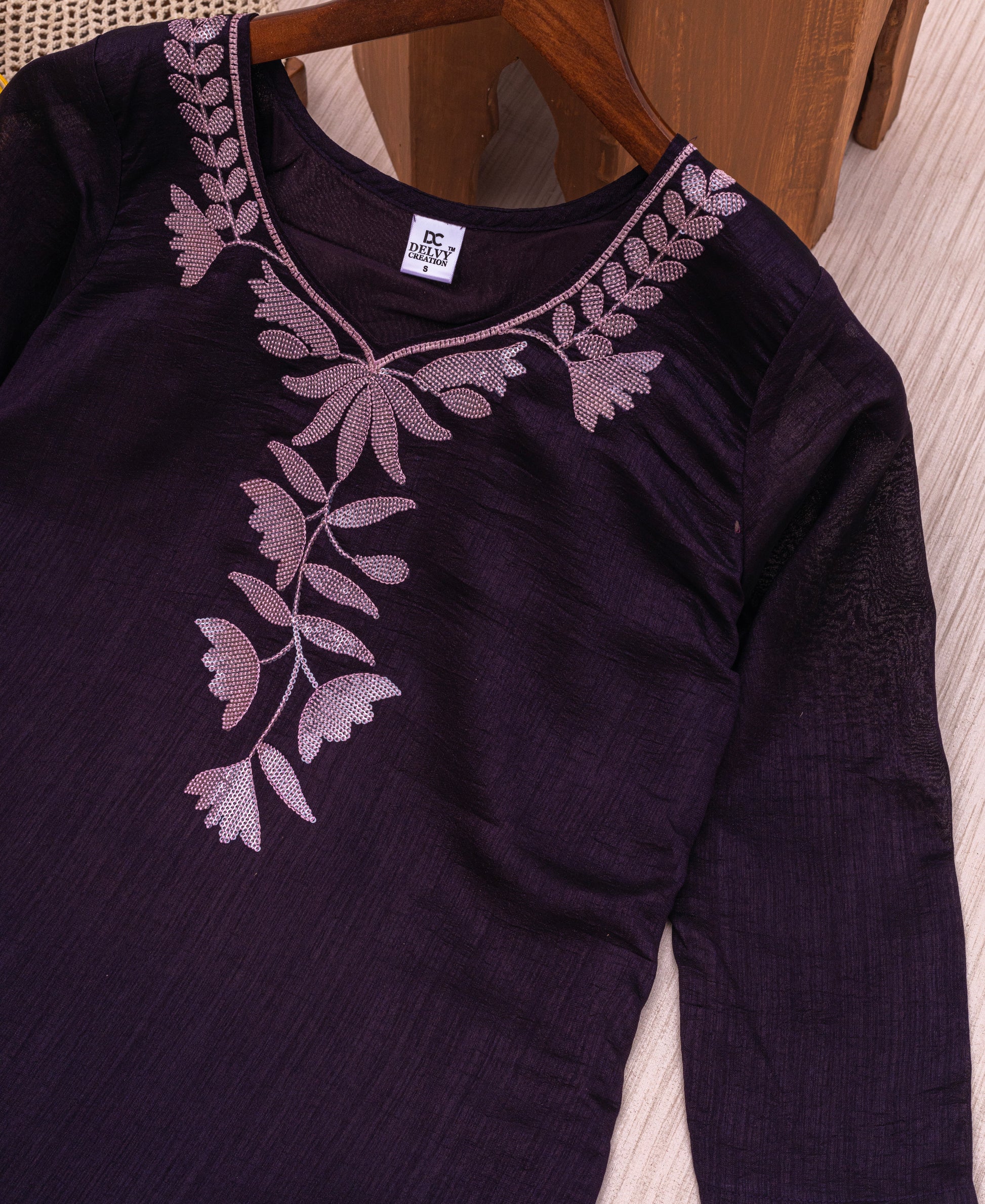 Care Instructions: Dry Clean Only | Hand Embroidery | Light Iron on Reverse