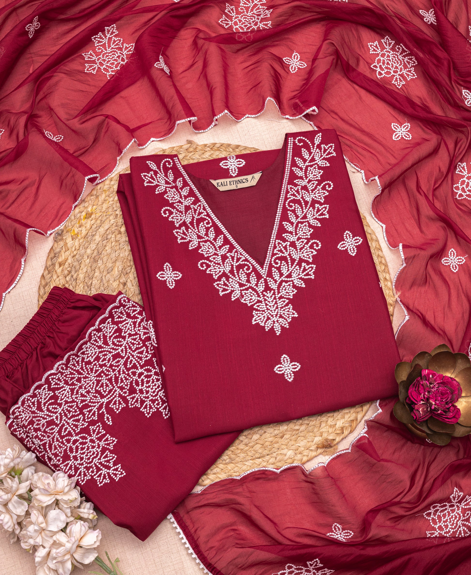 Care Instructions: Dry Clean Only | Hand Embroidery | Light Iron on Reverse