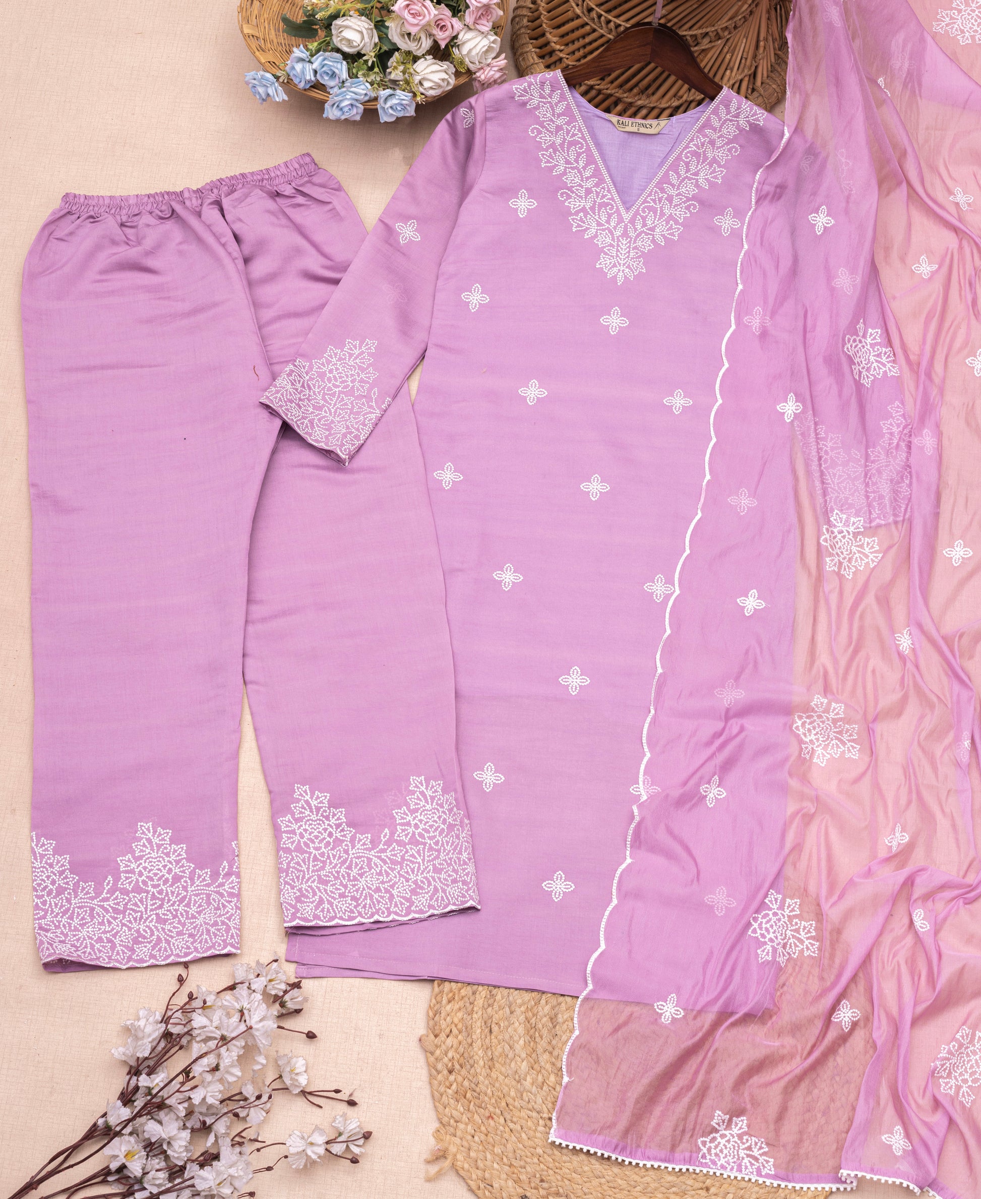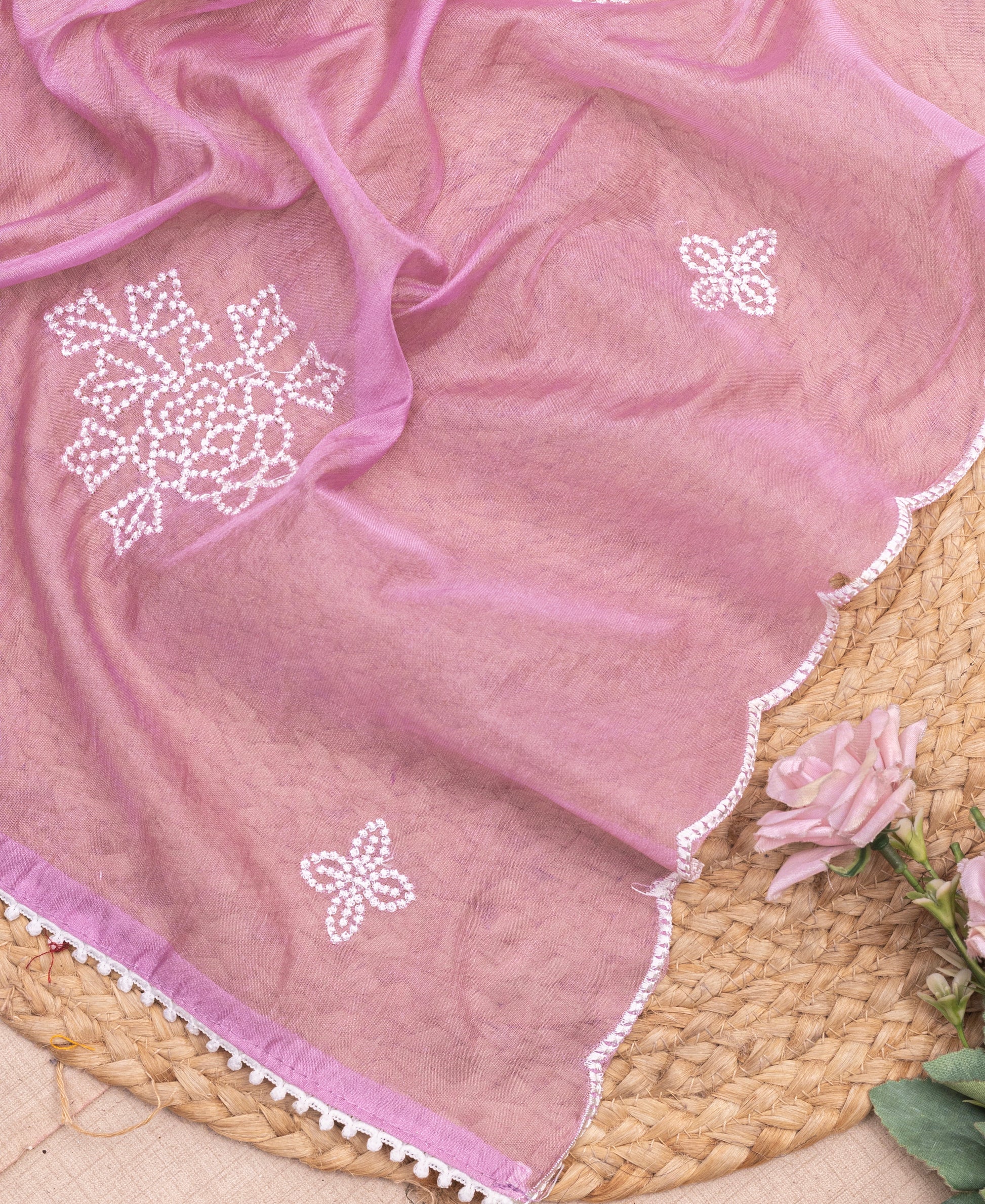 Description: A silk blend that whispers elegance, paired with delicate organza, carrying the artistry of hand embroidery like a timeless cityscape painted in thread.