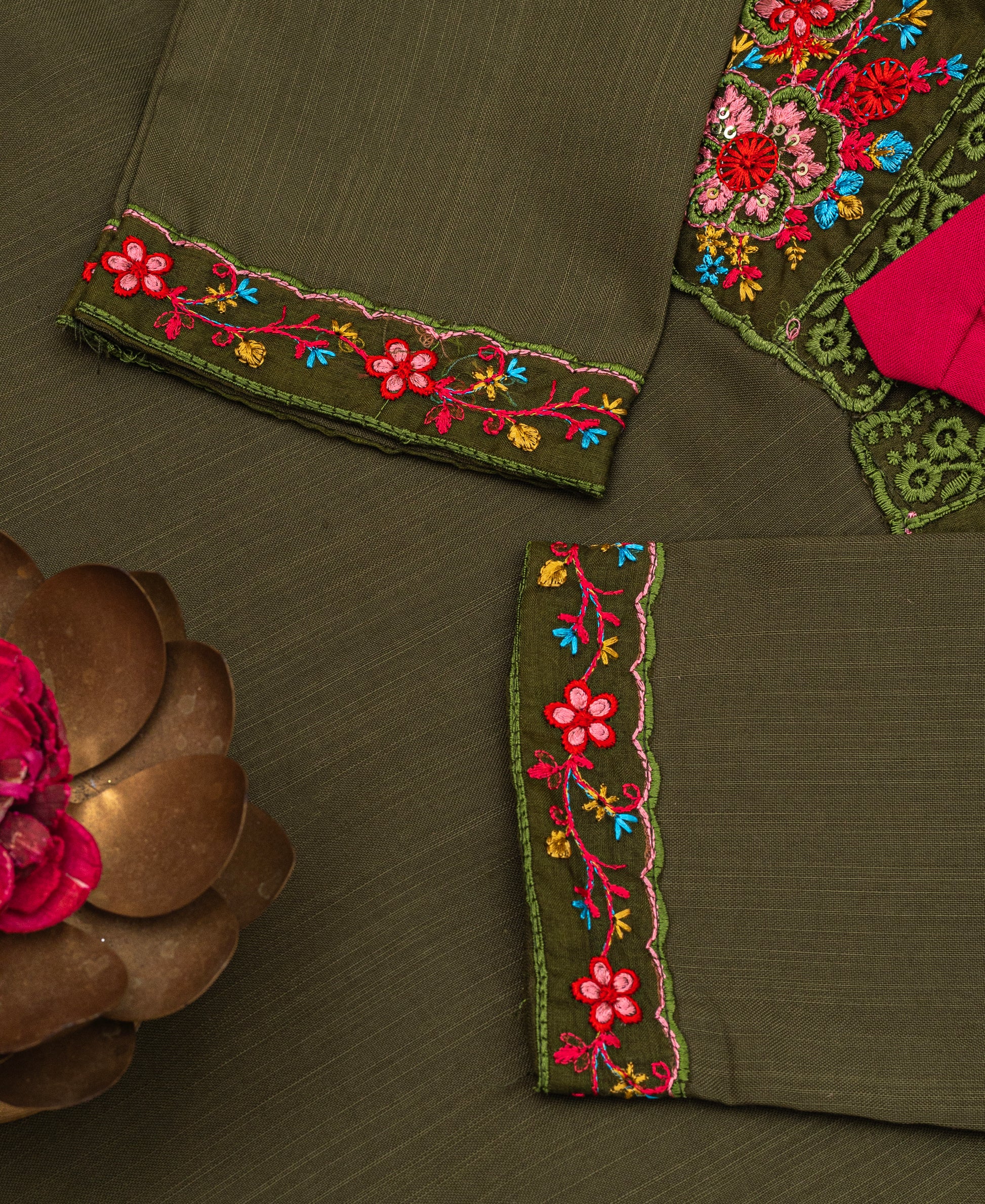 Care Instructions: Dry Clean Only | Hand Embroidery | Light Iron on Reverse