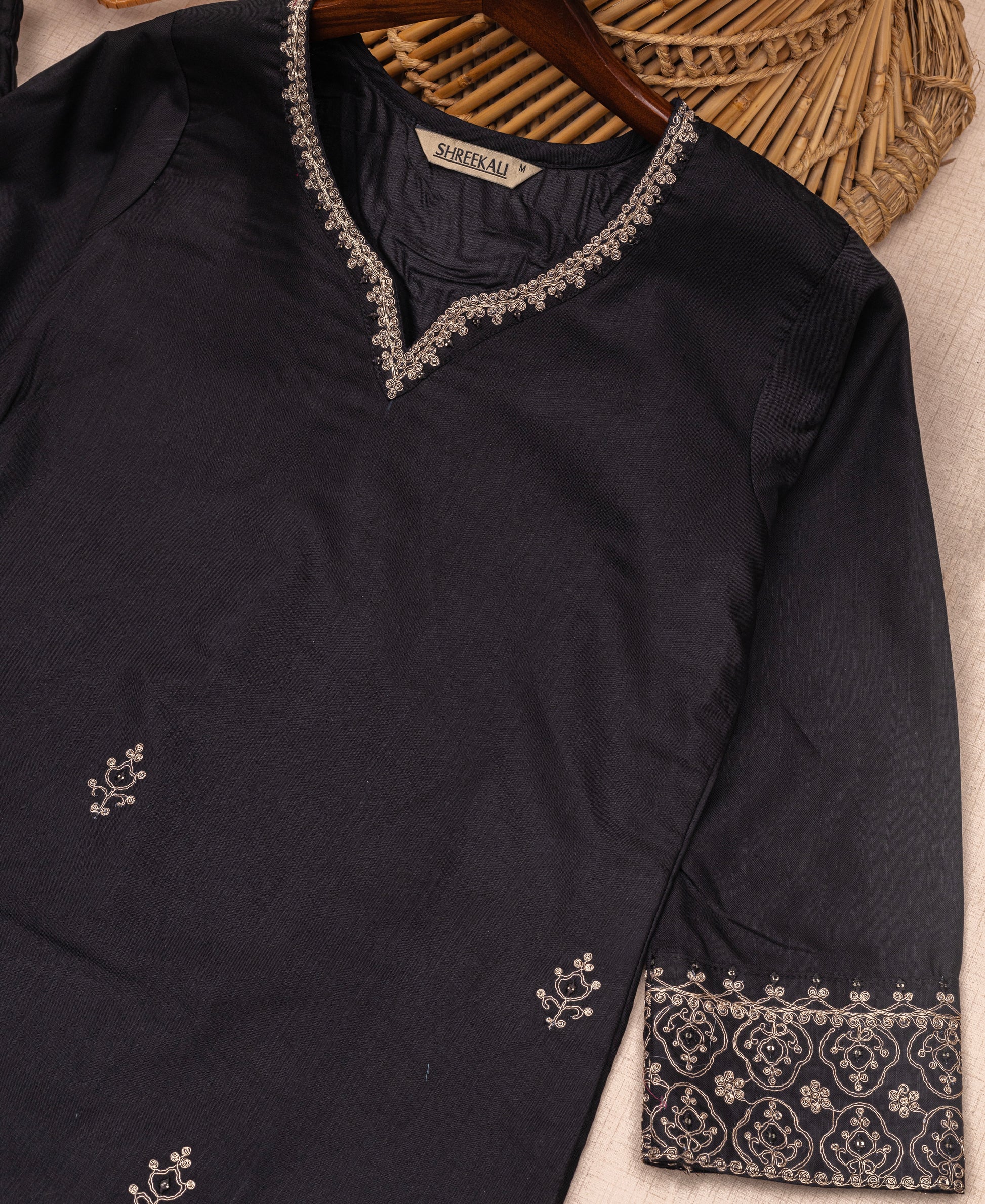 Care Instructions: Dry Clean Only | Hand Embroidery | Light Iron on Reverse