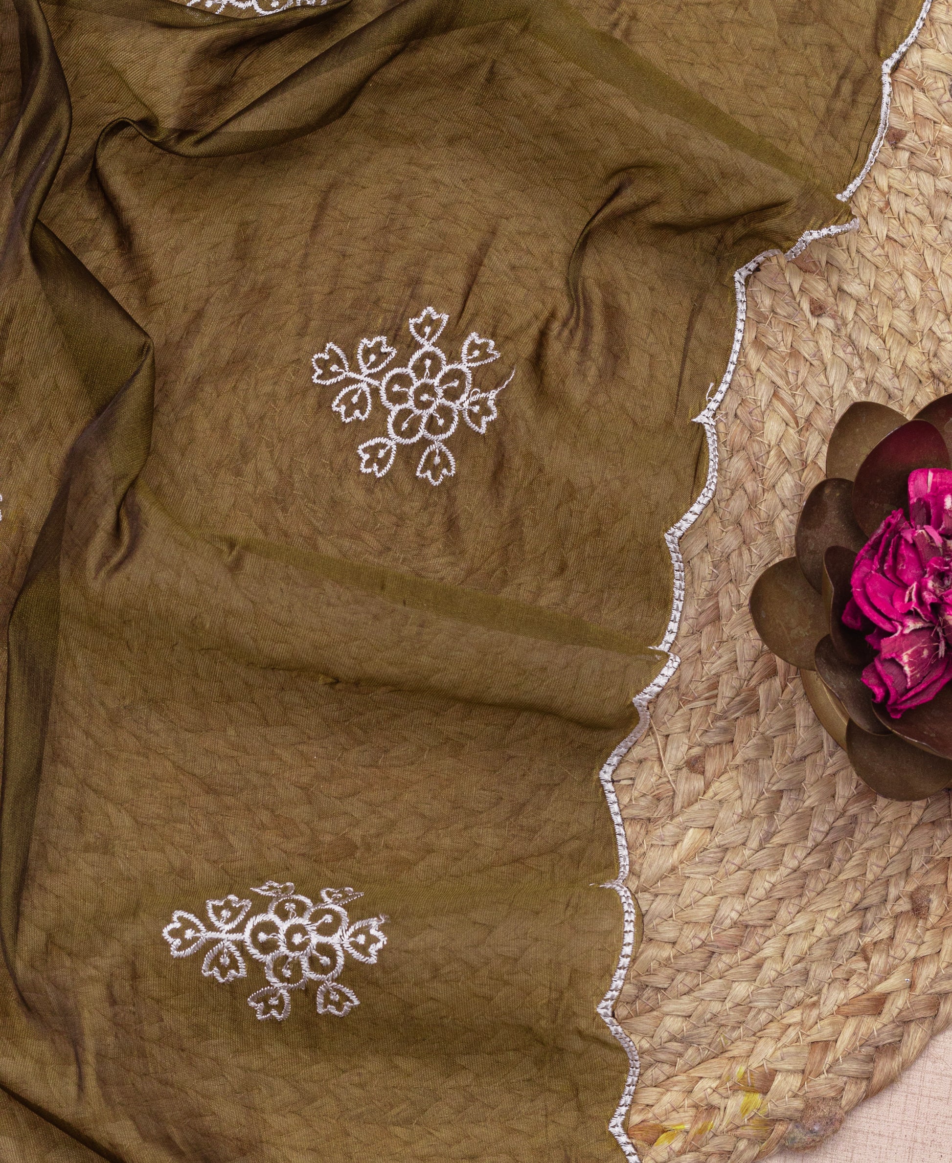 Description: Sunshine woven into silk blend threads, finished with intricate embroidery. The Organza dupatta dances with light in every step you take.